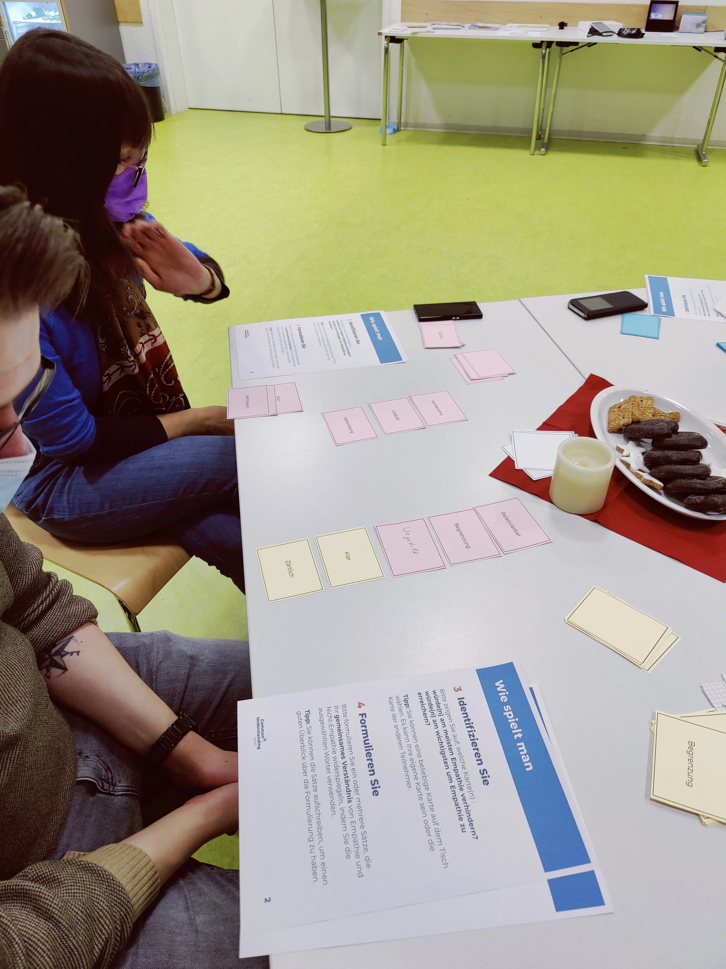 The third workshop was conducted during "Digital Cafe" sessions with older adults at a community center in Siegen, Germany. The Digital Cafe is a secure space where older adults can test new digital tools and ask volunteers questions about them. During the session, the workshop was conducted as a group, with two older adults and two volunteers using the German version of the toolkit